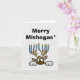 Este cartão apresenta uma rena exausta ou desanimada com velas nos chifres para representar uma Menorá. A palavra "Mishegas" em iídiche significa loucura. E, para alguns, os feriados são loucos, especialmente se você está misturando duas culturas diferentes. Então, este cartão deseja um "Feliz Mishegas Chrismukkah" de certa forma. Mas, todo o texto deste cartão pode ser alterado, editado ou removido para se adequar ao seu propósito e destinatário(s). Criado por Sheila Cicchi, Brownielocks.com. Todos os Direitos Reservados.