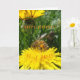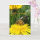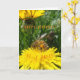 Dandélio ouro com uma abelha alegre fotografada num dia de verão. Pensamentos felizes para um feliz aniversário! Celebrar a abelha de mel e o mel delicioso faz disto o cartão de saudação perfeito para o seu jardineiro favorito e amante da natureza.