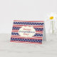Celebre o 4 de julho com este cartão patriótico de saudação de estrelas e listras. A faixa central diz, "Feliz Dia da Independência" em tons de vermelho, branco e azul em um fundo de estrelas e bares que é inspirado pela bandeira americana. Use o modelo para alterar facilmente a saudação do dentro. Você também pode "personalizar" se quiser alterar o texto na frente.