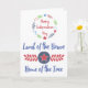 O cartão de boas-vindas perfeito para comemorar o dia 4 de julho, este design apresenta o dentro de "Feliz Dia da Independência" de uma coroa patriótica. "Terra do livre e lar dos corajosos" está escrita em letra decorativa por baixo. Dentro é uma mensagem encorajadora e patriótica. Perfeito para um amado, peça seu cartão de saudação hoje!