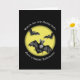 Uma bela carta de saudação de Halloween que é engraçada e assustadora, esta design tem um efeito 3D com um trio de morcegos negros esquisitos voando contra uma lua amarela no céu noturno. Texto timístico na frente diz "Cuidado com morcegos voadores baixos. Tenha um Feliz Dia das Bruxas!" O texto dentro pode ser conservado por escrito ou editado com a redação desejada.