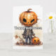 Esta carta fantástica apresenta um infeliz amigo de abóbora. Sinta-se à vontade para editar o texto para tornar este cartão de Dia das Bruxas pessoal e de algum tipo.