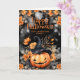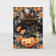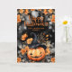Feliz cartão de Dia das Bruxas com uma abóbora sorridente adornada com flores laranja e um dentro de fotos. Personalize facilmente este cartão de Dia das Bruxas fofo com o seu nome familiar, fotografia e texto.