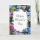 Agradeça a sua mamã para tudo que faz com o cartão feliz do dia das mães do quadro bonito da flor do Hydrangea. Este cartão florido feito sob encomenda elegante do dia das mães caracteriza uma fotografia floral digital aumentada das flores azuis, cor-de-rosa e brancas da flor do hydrangea.