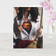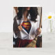 Feliz Dia das Mães com uma mulher segurando uma vassoura e uma camisa desabotoada com um traje de super-herói aparecendo. As mães são super-heróis!