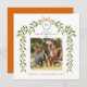 Mande saudações de Ação de Graças para a família e amigos com este cartão único de saudações de cores d'água pintado com a mão, que inclui a terra dos citros e a crista com monograma no centro. Adicione sua foto favorita da família de feriados. Também estão disponíveis etiquetas de endereço de retorno e adesivos correspondentes.