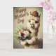 Um cartão de saudação de estilo de vintage bonito com uma alpaca segurando flores, arte de colagem. - saudações de dia de as mães felizes para um animal alpaca que ama a mãe. Dentro há uma mensagem que você pode personalizar ou simplesmente excluir.