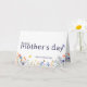 Cartão de Dia de as mães bonito com flores silvestres, borboletas e minúsculos insetos. Estimulando em azul escuro.