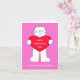 Um desenho de um gato branco segurando um coração vermelho que tem 'Feliz dia de os namorados' escrito nele. A imagem tem um fundo cor-de-rosa e é acompanhada das palavras "A uma Filha Maravilhosa".
