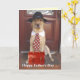 Uma placa de Dia de os pais com um laboratório amarelo vestida para ir ao escritório e, no dentro, um filhote. Espero que seja humorístico, mas comovente. As cores do texto e do plano de fundo podem ser personalizadas.