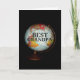 Um globo antigo de cor brilhante, fotografado contra fundo negro, é o tema do meu "Feliz Dia de os pais ao Melhor Avô da Terra!" Placa de dia de os pais. O "Melhor Avô" em texto preto na face do globo completa a imagem frontal do cartão.