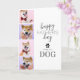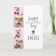 Cartão de dia de os pais de animais de estimação bonito com um fundo branco simplista que pode ser mudado para qualquer cor, uma colagem de 4 fotos do seu bebê de pele, uma impressão de pata com um coração no meio, e o ditado "dia de os pais feliz do cachorro". Este cartão também pode ser alterado para um gato, cavalo ou qualquer outro animal.