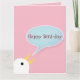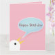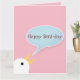 Ilustração de um pássaro branco, bolha de fala e texto personalizado na frente. Na dentro há um pássaro negro com bolha de fala.
