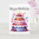 Esta placa vibrante apresenta uma ilustração de um bolo de festa de aniversário delicioso. Sinta-se à vontade para personalizar este cartão com seu texto para torná-lo único e de um tipo.