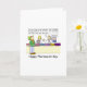Um cartoon de um farmacêutico explicando a uma assistente descontente que ela não ouviu o que um cliente disse. As palavras "Feliz Dia Farmacêutico" acompanham a imagem.