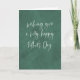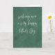 Desejando a você um muito Feliz Dia dos Pais! Este cartão simples e elegante é perfeito para qualquer pai, avô ou figura paterna. Personalize a mensagem interna deste cartão moderno do Dia dos Pais para um toque personalizado. A escrita branca na frente é moderna e elegante sobre o fundo verde texturizado. O interior apresenta texto azul coordenado. Encontre mais estilos e cores pela Lea Delaveris Design.