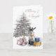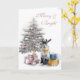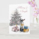 Feliz e Brilho - Adorável cabra de bebê pigmeus ao lado de presentes envoltos por presentes, e uma árvore de Natal decorada com bolhas cor-de-rosa mudo - personalize o texto frontal e dentro, perfeito para o primeiro Natal da menina, trabalho artístico original ©WhimsicalArtwork™ para a goatLady GetYerGoat™