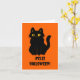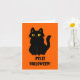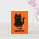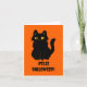 Cartão de Halloween em espanhol. Cartão Feliz Halloween (feliz Halloween em espanhol). Texto em espanhol, Feliz Halloween (feliz Halloween em espanhol) e ilustração de Halloween. Mensagem dentro do cartão, Feliz Halloween (feliz Halloween em espanhol).
