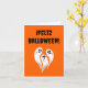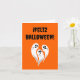 Cartão de Halloween em espanhol. Cartão Feliz Halloween (Feliz Halloween em espanhol). Texto em espanhol, Feliz Halloween (Feliz Halloween em espanhol) e ilustração de Halloween. Mensagem dentro do cartão, Feliz Halloween (Feliz Halloween em espanhol).