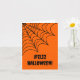 Cartão de Halloween espanhol. Cartão Feliz Halloween (feliz Halloween em espanhol). Texto em espanhol, Feliz Halloween (feliz Halloween em espanhol) e ilustração de Halloween. Cartão de dentro de mensagem, Feliz Halloween (feliz Halloween em espanhol).