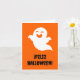 Cartão de Halloween espanhol. Cartão Feliz Halloween (feliz Halloween em espanhol). Texto em espanhol, Feliz Halloween (feliz Halloween em espanhol) e ilustração de Halloween. Cartão de dentro de mensagem, Feliz Halloween (feliz Halloween em espanhol).