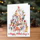 Mande cartões de natal nesta temporada de festas com este lindo cachorro de árvore de Natal em um design de aquarela. Este cartão de festas para amantes de cães apresenta cães de raças variadas em chapéus de santa. Personalize com o nome da família. Este cartão de natal de cão é perfeito para amantes de cães, negócios de animais de estimação, veterinários, cuidados com natal veterinário, cuidados com animais de estimação, colegas de cão e babás de estimação. Visite nossa coleção para combinar cartões de natal, decoração doméstica e presentes. COPYRIGHT © 2020 Judy Burrows, Black Dog Art - Todos Os Direitos Reservados. Placa de Cachorros de Árvore Feliz HOWLFriday Dog