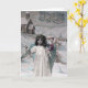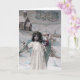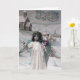 Um cartão postal de Natal francês vintage em domínio público. Ele apresenta uma garota vestida como um anjo de Natal carregando presentes.