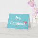 Cartão de Boas Festas de Natal da Pesca com Mosca. Cana de pesca com mosca, carretel e anzol com isca. Feliz Natal em letras brancas. Fundo azul turquesa. Perfeito para pescadores com mosca, independentemente de pescando trutas ou achigãs nesta época de Natal!