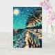 Cartão de Natal personalizado bonito costeiro. Ai arte representando uma fileira de palmeiras com luzes de Natal iluminadas sobre elas. Uma bonito reflexão sobre a praia e as ondas arenosas.