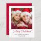 Cartão de saudação de Natal amigável, com sua foto e "Feliz Natal" em um roteiro na moda vermelho.