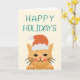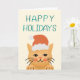 Esta cartões de natal apresenta uma ilustração adorável de um gato vestindo um chapéu de Papai Noel junto com as palavras Felizes Feriados e uma mensagem sincera na dentro.