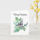 Feliz Natal com pássaro nu pintado de cor d'água com bagas. Arte de Jenn Steffen, o Emporium de Jenn.
