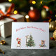 Celebrar os feriados com este adorável cartão de Natal dobrado, com três camundongos encantadores decorando uma árvore de Natal, enrolados em luzes, e segurando um presente embrulhado. O design alegre traz um toque delicioso de humilhação aos seus cumprimentos sazonais. Dentro, a mensagem é totalmente personalizável, permitindo que você adicione suas próprias palavras sinceras. Perfeito por espalhar alegria festiva a amigos, família ou clientes, este cartão de Natal personalizável captura a magia e a alegria da estação. Personalize para tornar seus cartões de natal especiais!
