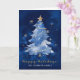 Envie cartões de natal elegantes com este marinho azul de Natal impressionante apresentando uma árvore de Natal aquarela embrulhada em fita de ouro e revestida com uma estrela de ouro. Cercado por delicados flocos de neve de ouro sobre fundo azul profundo, este design expele elegância refinada no inverno. Perfeito para enviar desejos de feriado aquecidos de um indivíduo, casal ou família que ama designs de Natal eternos e clássicos.