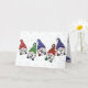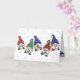 Cartão de Natal divertido e esquimético. Os gnomos têm sinais de FELIZ ortográfica.