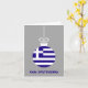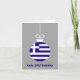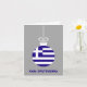Cartão de Natal grego (Χριστουγεννιάτικη κάρτα) com mensagem de Natal em língua grega, Καλά Χριστούγεννα, Boas Festas em grego e ilustração de decoração de Natal com bandeira grega estilizada. Inclui mensagem tradicional grega de Natal dentro do cartão 'Καλά Χριστούγεννα'.