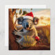 Koala australiano sentado numa árvore vestindo um chapéu de santa. Dentro: "Feliz Natal e Feliz ano novo" Este coala peludo é um nativo da Austrália que eles são facilmente reconhecíveis por seu corpo escondido e cabeça grande com orelhas redondas, lisas e nariz grande e em forma de colher.