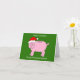 Uma simples ilustração de um banco de porcos cor-de-rosa vestindo um chapéu de Papai Noel, colocado sobre um fundo verde-escuro. As palavras "Feliz Natal ao Nosso Conselheiro Financeiro" acompanham a imagem.