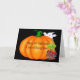 Um cartão de Dia das Bruxas de 1ruas giro para a neta com fundo preto e uma abóbora laranja grande com as palavras "Feliz neta do Dia das Bruxas de 1ruas" no centro, um fantasma feliz espiando por trás e uma maçã doce à direita.