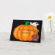 Um cartão de Dia das Bruxas de 1ruas giro para neto com fundo preto e uma abóbora laranja grande com as palavras "Feliz neto de Halloween de 1rua" no centro, um fantasma feliz espiando por trás e uma maçã doce na frente à direita.