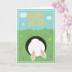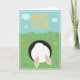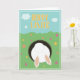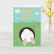 Cartão de "Feliz Páscoa" para desejar uma Páscoa muito feliz; com um adorável coelho engraçado saltando em sua toca