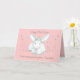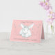 Boas saudações à primeira Páscoa decoradas com um coelho branco doce num pedaço de flores camomila desenhadas com lápis e lápis colorido num fundo rosa quente. Na dentro está o mesmo tom de rosa e uma flor pequena. Personalize o texto na frente e na dentro para ajustado das suas necessidades.