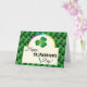 Esta Rua. O cartão de saudação de Patrick apresenta um padrão de shamrock em um fundo preto com o texto: Feliz Rua. Dia de Patrick! O dentro apresenta texto personalizável para que você adicione uma mensagem pessoal.