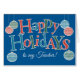 Um cartão feliz, baseado em texto, para um professor, com Ornaments and Lettering (Ornamentos e Cartas), cheio de vermelhos, azuis e verdes e bolinhas, esboço em branco sobre um fundo azul brilhante. Também há uma placa frontal personalizada com este design para o caso de você não encontrar uma placa para o destinatário específico que está procurando.