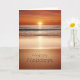 A tonalidade do ouro do pôr do sol reflete sobre as ondas do oceano e acende o texto "Felizes Feriados" sobre areia lisa da praia. O texto pode ser alterado.