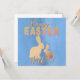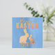 Um belo cartão azul com silhuetas laranja de coelhos no estilo pontilhado. Cores muito modernas, Primavera, nome de destinatário personalizável, desejo um felz pascoa aos seus entes queridos!