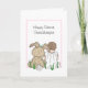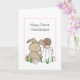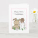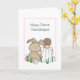 Uma doce garotinha desenhada sentada ao lado de um coelho recheado. Este cartão diz neta, mas você pode personalizar o texto com um nome ou outro membro da família.