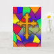 Bonito cruz com uma placa de Páscoa de fundo de vidro colorido.