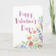 Este cartão do Dia dos Namorados apresenta uma bela flor silvestre com uma tipografia manuscrita vibrante "Feliz Dia dos Namorados" em um fundo branco. Você pode personalizar facilmente o texto dentro do cartão ou simplesmente excluí-lo.