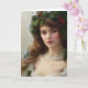 O cartão de férias dobrado apresenta uma bela mulher de branco com folhagem de inverno num retrato de estilo vintage. Um belo retrato temático de Natal criado com software gerador de IA